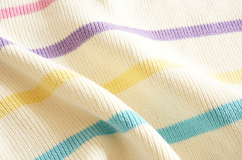 Girls Sweater Casual Rainbow Striped Sweater